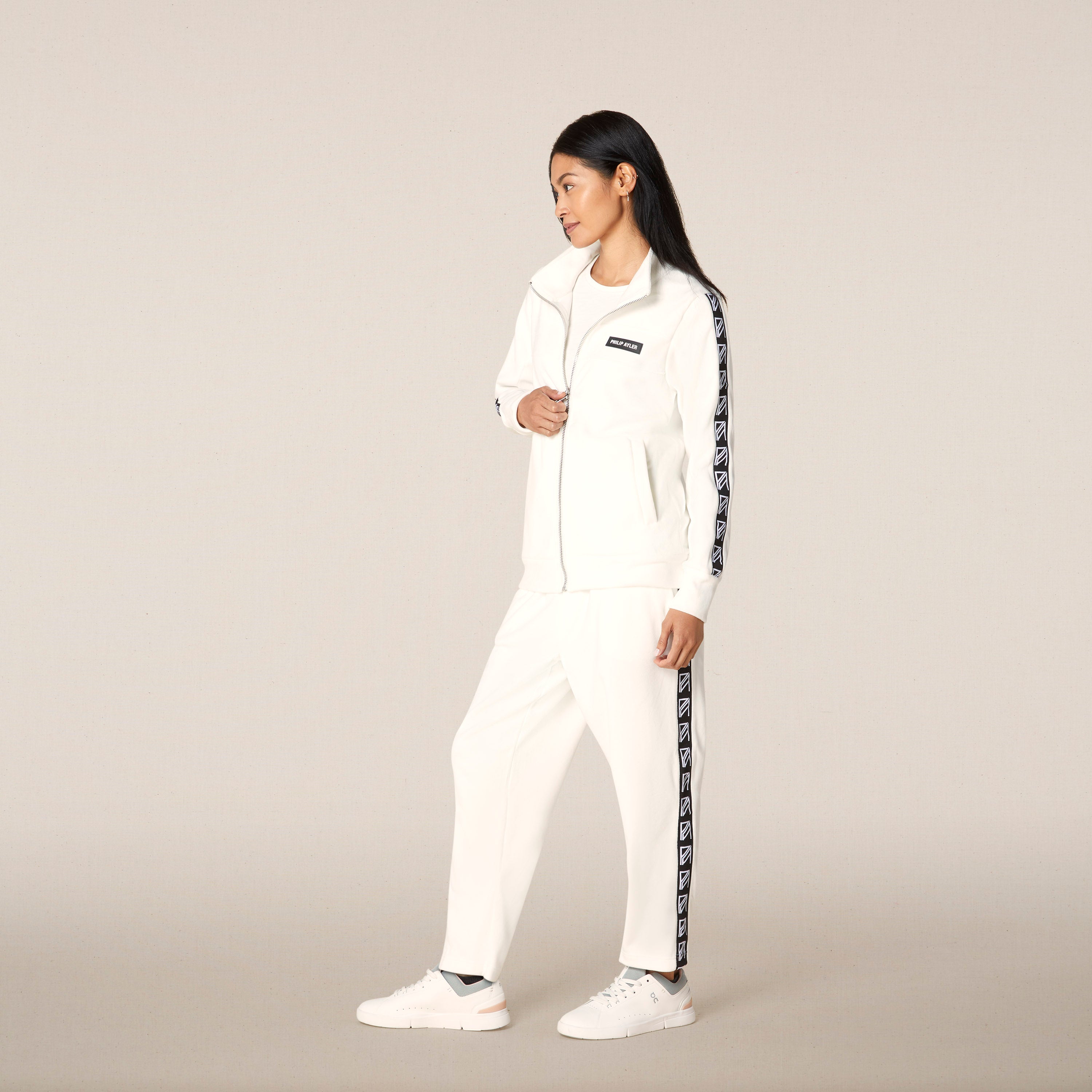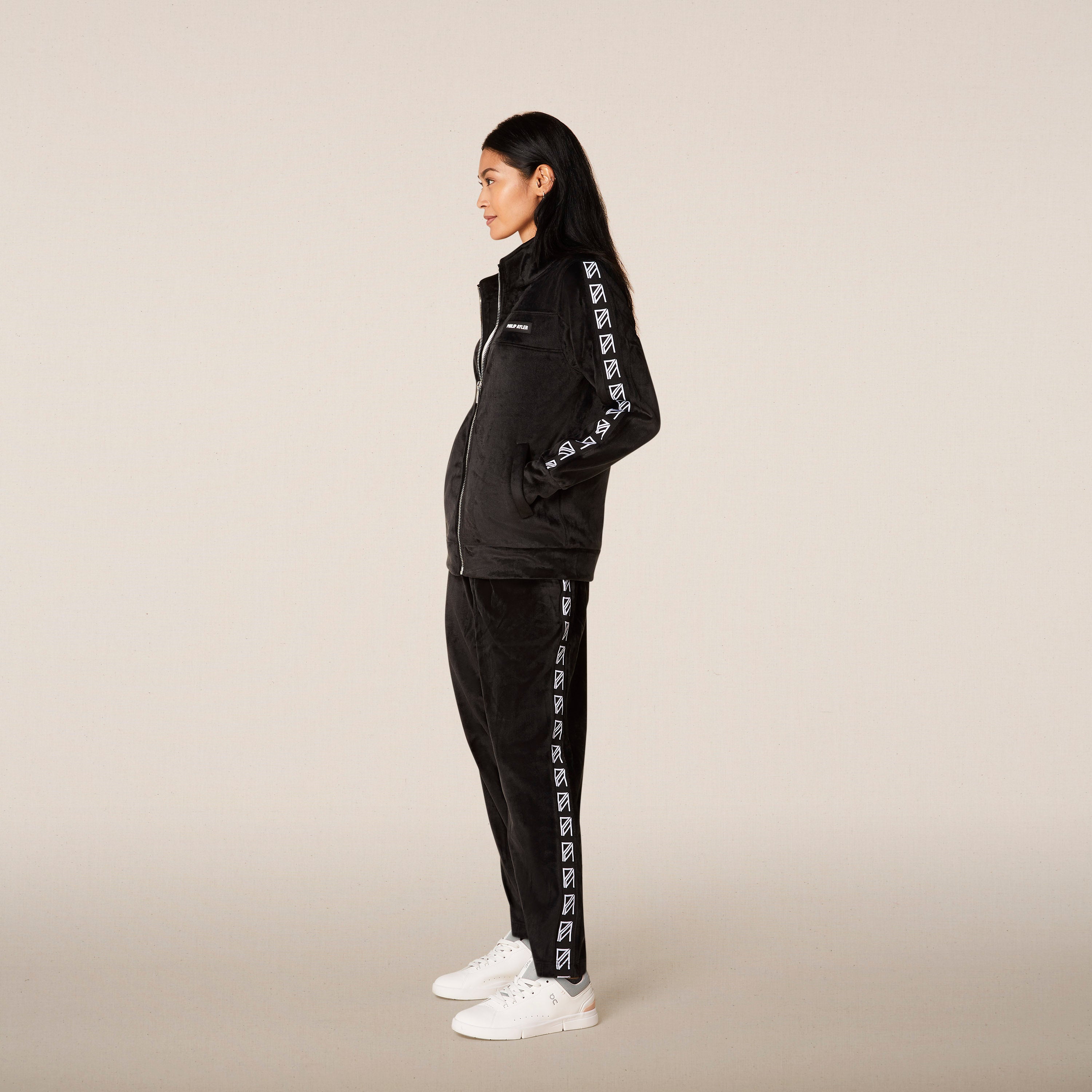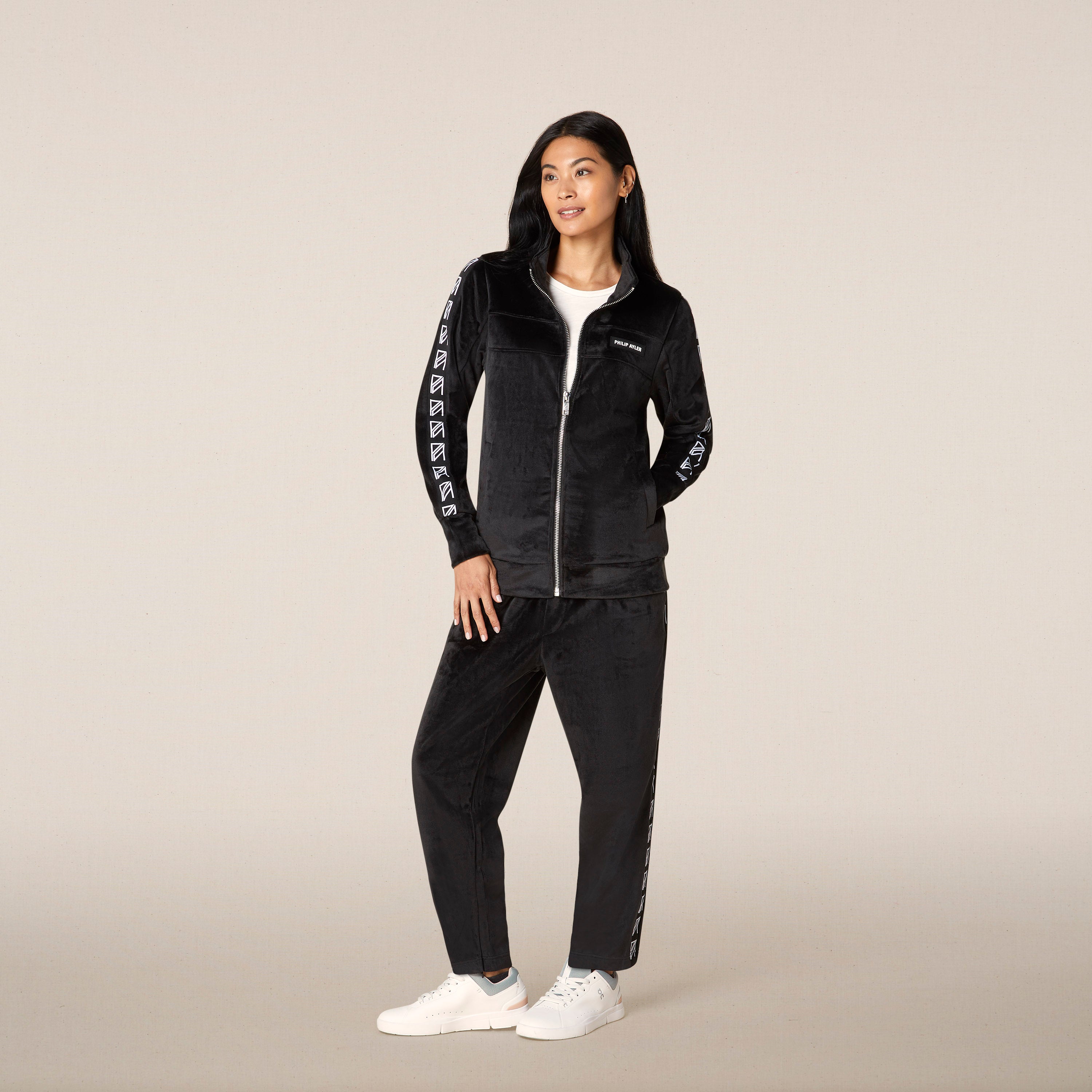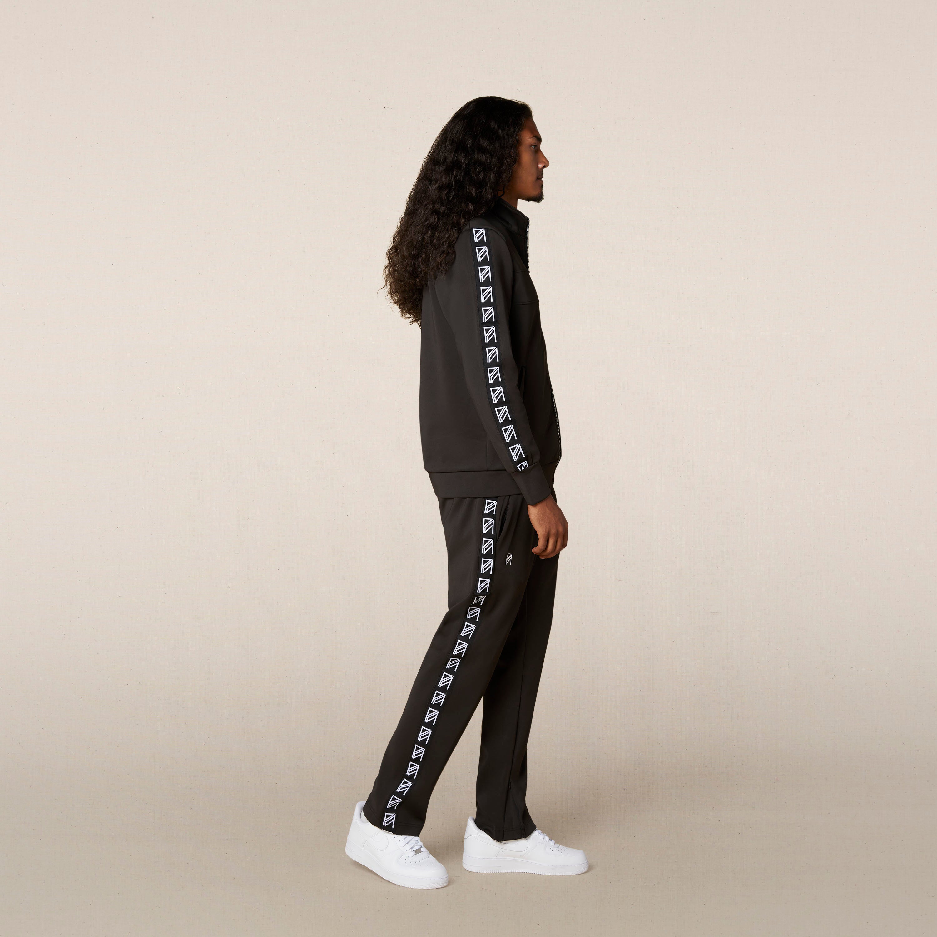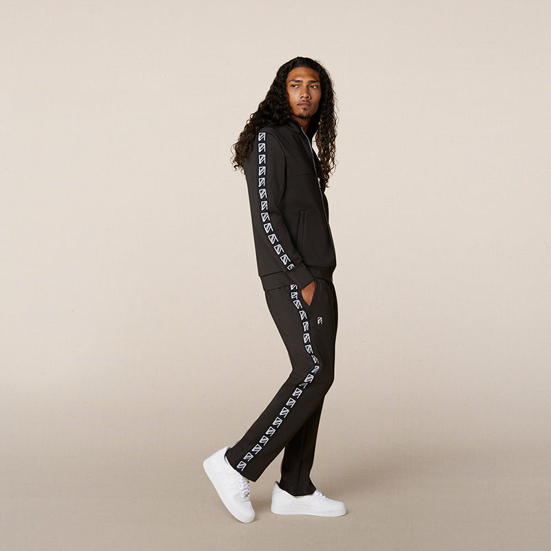 The Philip Ayler Signature Track Suit is a bold fusion of athletic heritage and high-end design. Crafted from an ultra-luxurious blend of cotton, polyester and spandex, it offers an exceptionally smooth feel with just the right amount of stretch for movement and comfort. The sleek, tailored silhouette is accented by a custom Philip Ayler logo taping running down the sleeves and pant legs. Designed with function in mind, the jacket includes zippered side pockets to keep essentials secure, while the pants feature expandable boot zip zippers with custom Philip Ayler buttons. The jacket is finished with a stand collar, full front glossy nickel zip, and signature chest patch.