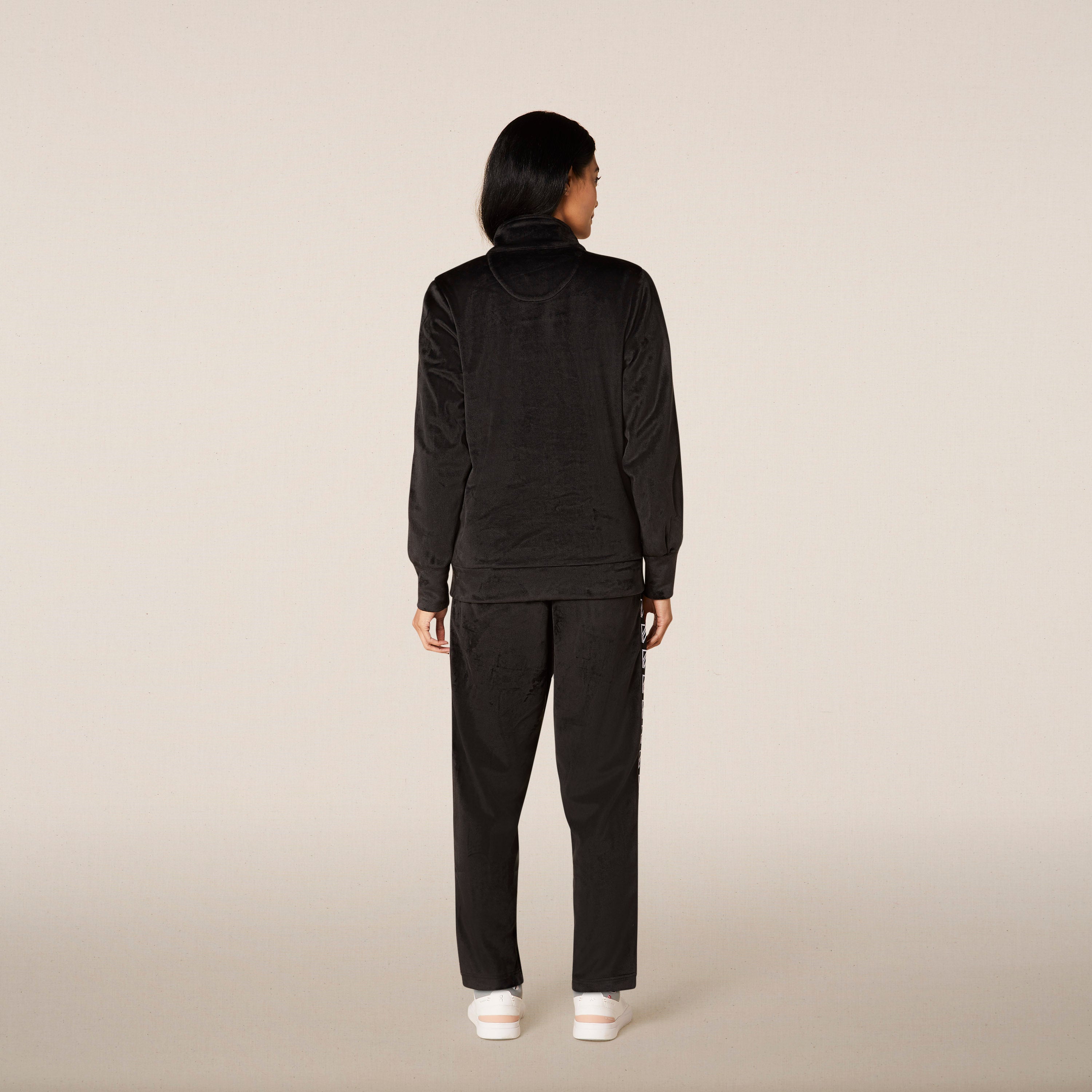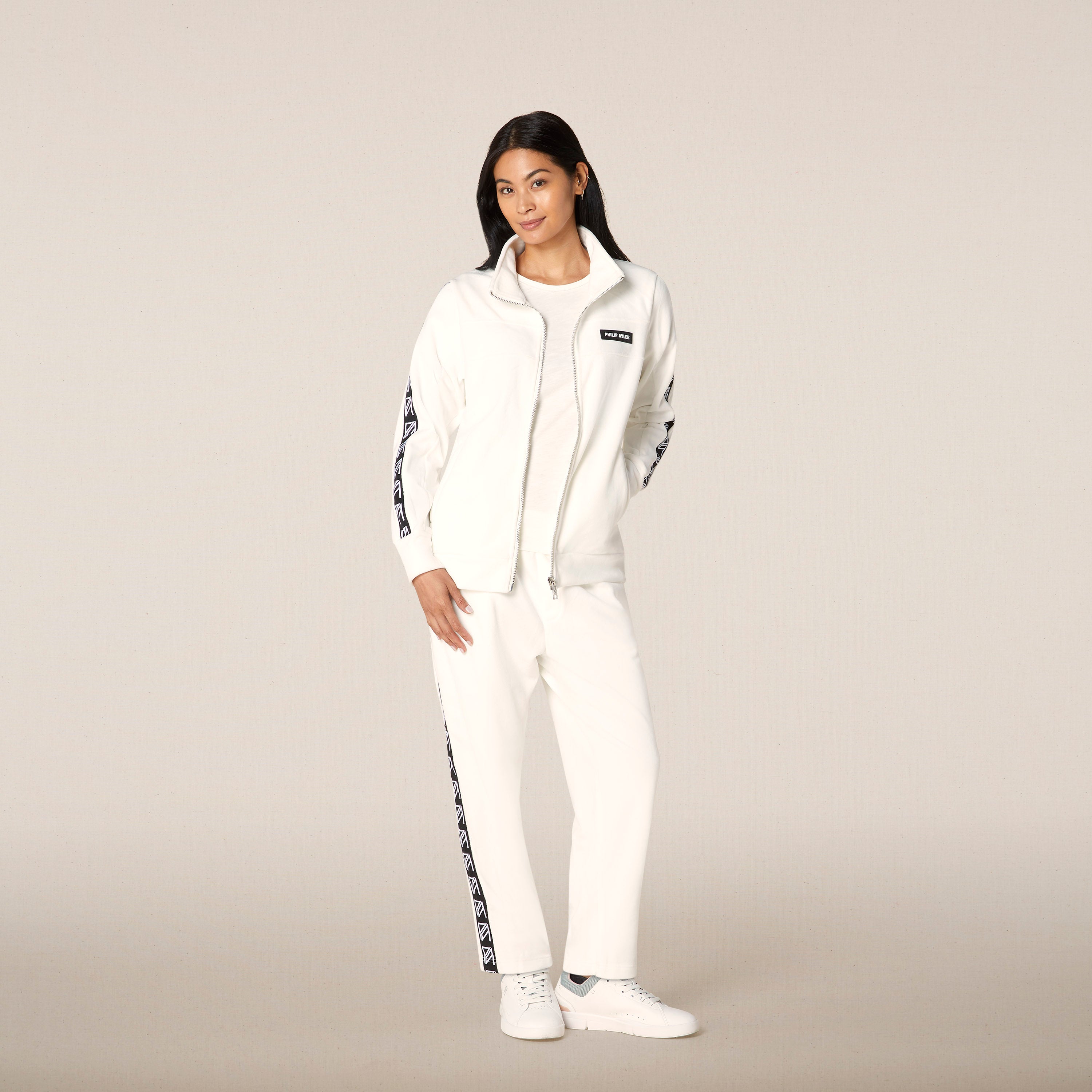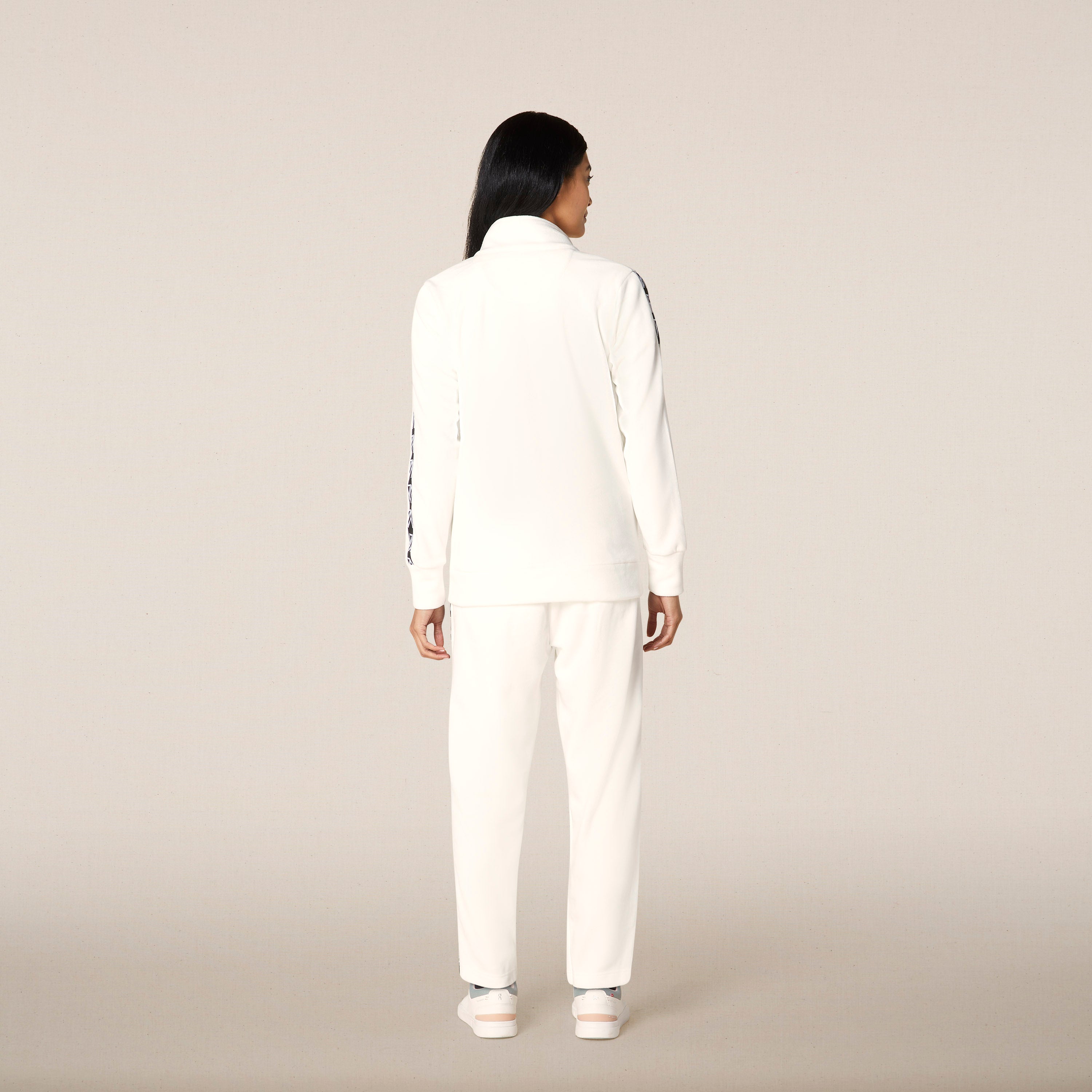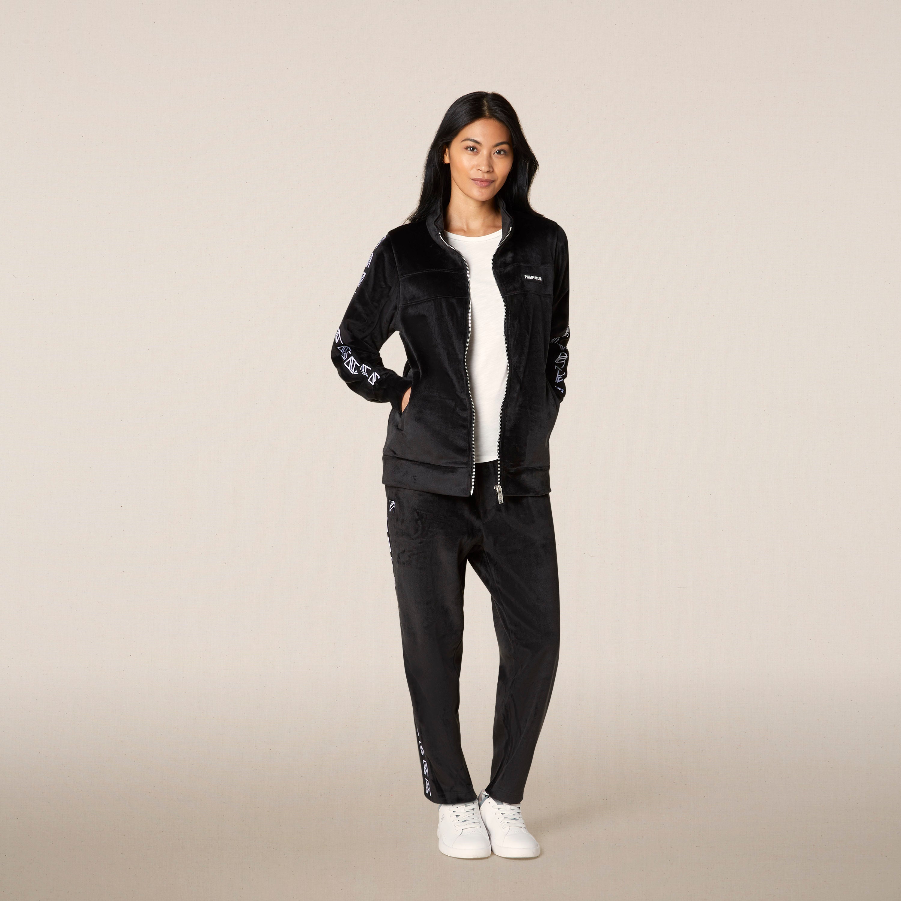 The Philip Ayler Signature Track Suit is a bold fusion of athletic heritage and high-end design. Crafted from an ultra-luxurious blend of cotton, polyester and spandex, it offers an exceptionally smooth feel with just the right amount of stretch for movement and comfort. The sleek, tailored silhouette is accented by a custom Philip Ayler logo taping running down the sleeves and pant legs. Designed with function in mind, the jacket includes zippered side pockets to keep essentials secure, while the pants feature expandable boot zip zippers with custom Philip Ayler buttons. The jacket is finished with a stand collar, full front glossy nickel zip, and signature chest patch.
