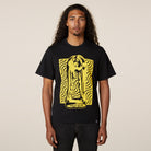 The “Angels’ Embrace” T-Shirt features a striking yellow-on-black graphic of two angels locked in an embrace—sculptural, serene, and surreal. Crafted from 100% Peruvian Pima cotton, this piece offers a breathable, luxuriously soft feel. Pre-shrunk and garment-dyed, it arrives ready to wear and made to last. A spiritual statement for the romantics, the rebels, and the radiant.