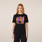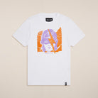 The “Ziggy” T-Shirt by Philip Ayler strikes like a flash of icon-classic energy. Featuring a masked head printed in bold violet, slashed with a jagged orange lightning bolt across one eye, the artwork nods to glam rock’s golden era while hinting at anonymity, rebellion, and reinvention.