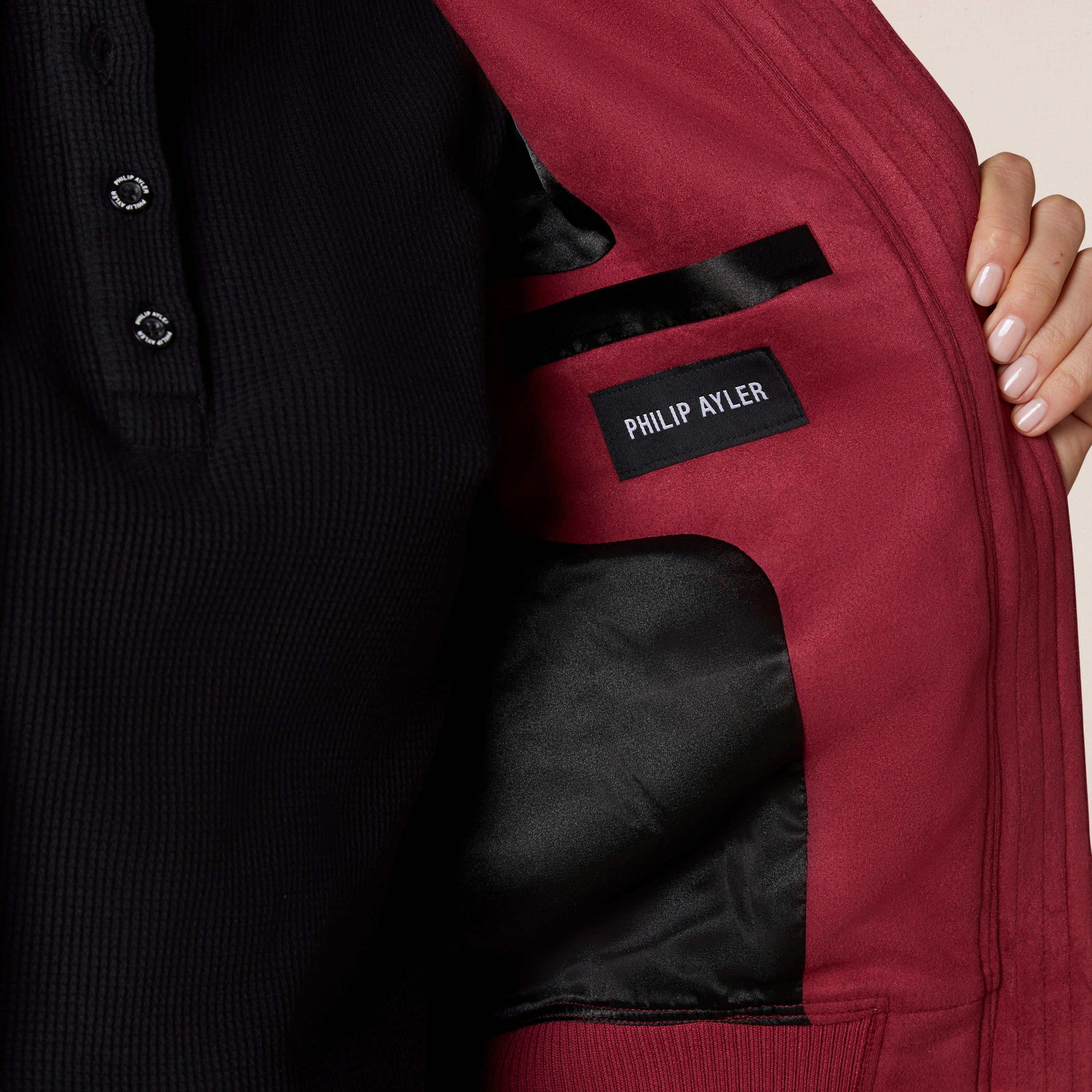 The Philip Ayler Suede Bomber brings classic silhouette into refined territory with a faux suede finish so smooth it begs to be touched. Cut in a tailored silhouette and lined with 100% silk, this jacket is designed to move with intention and speak without shouting.