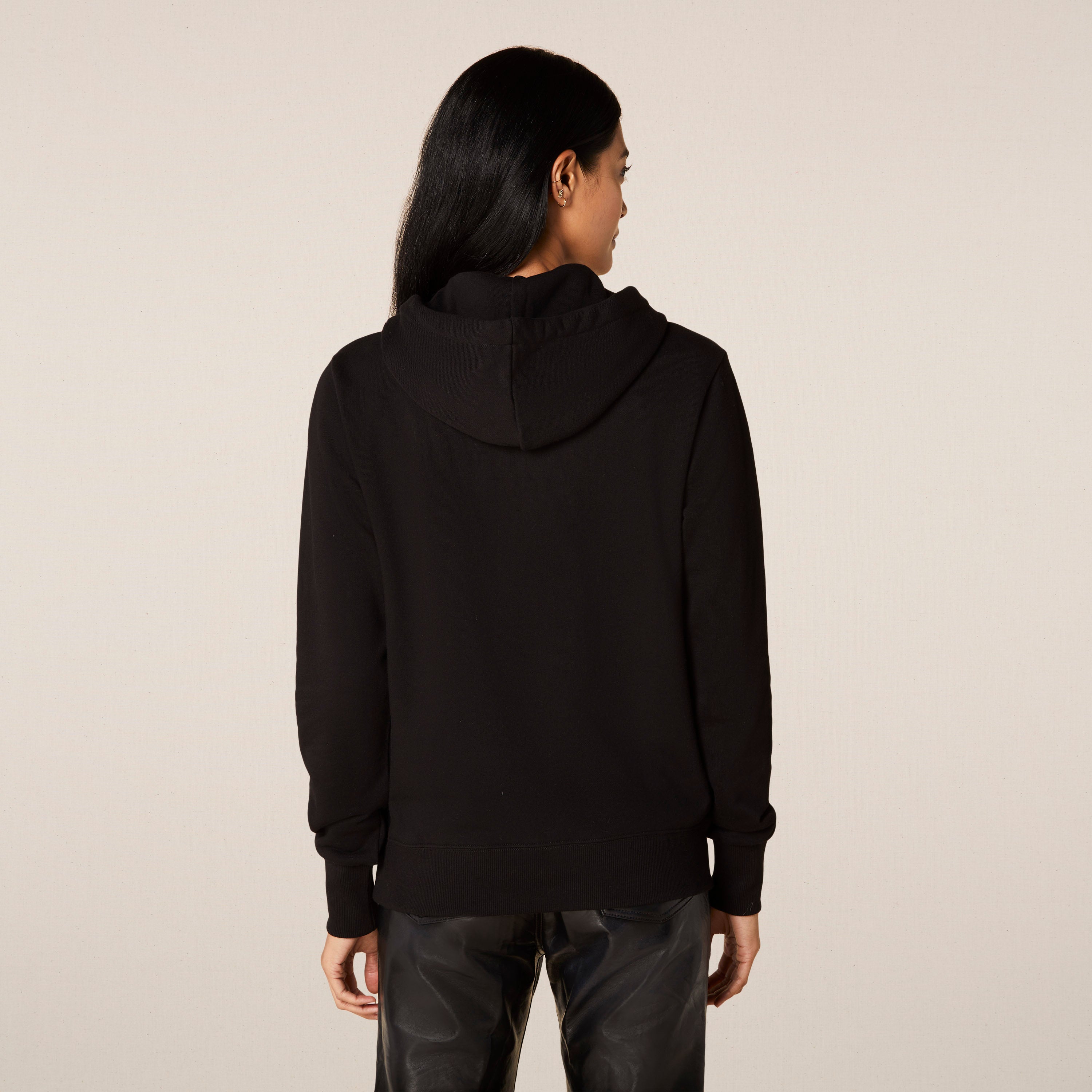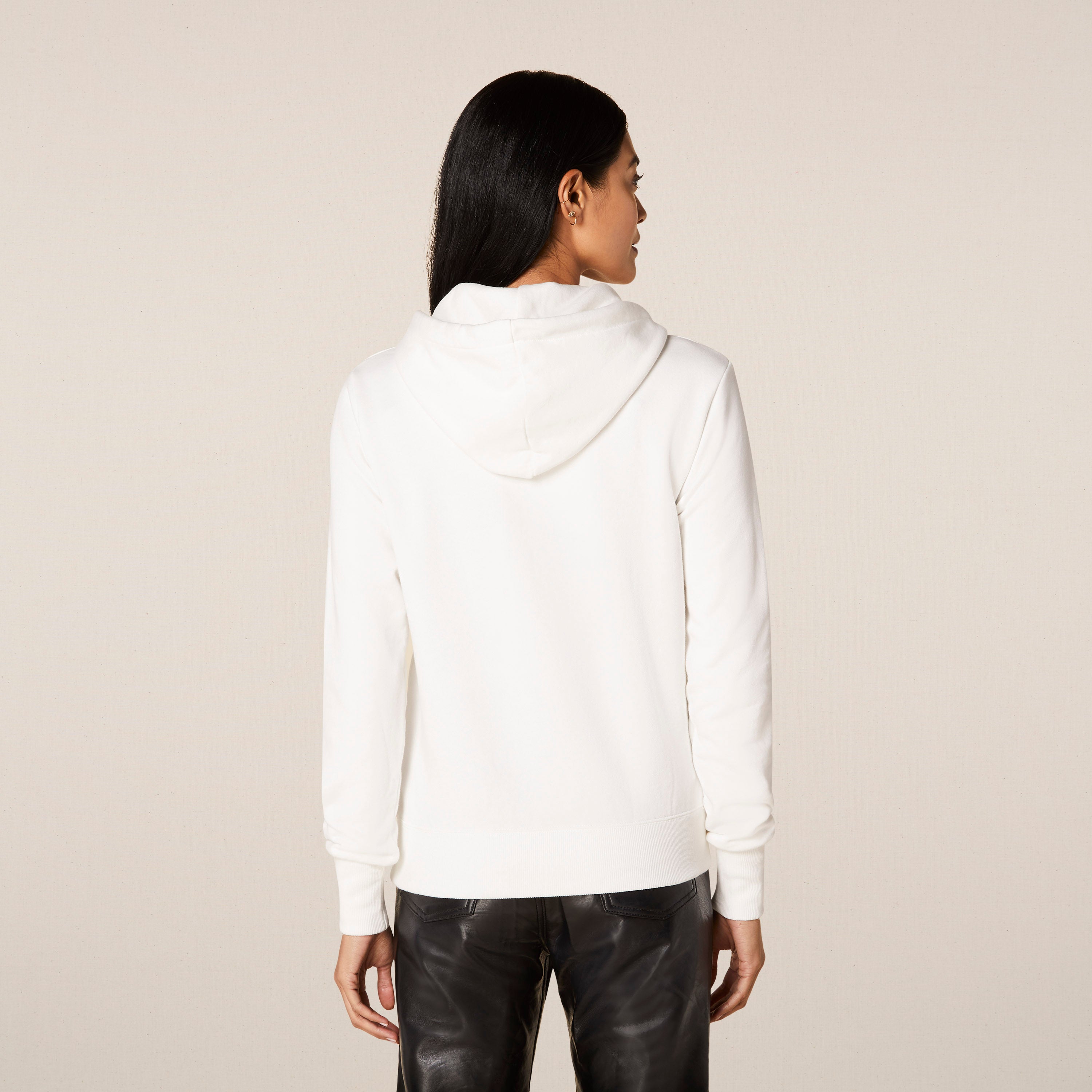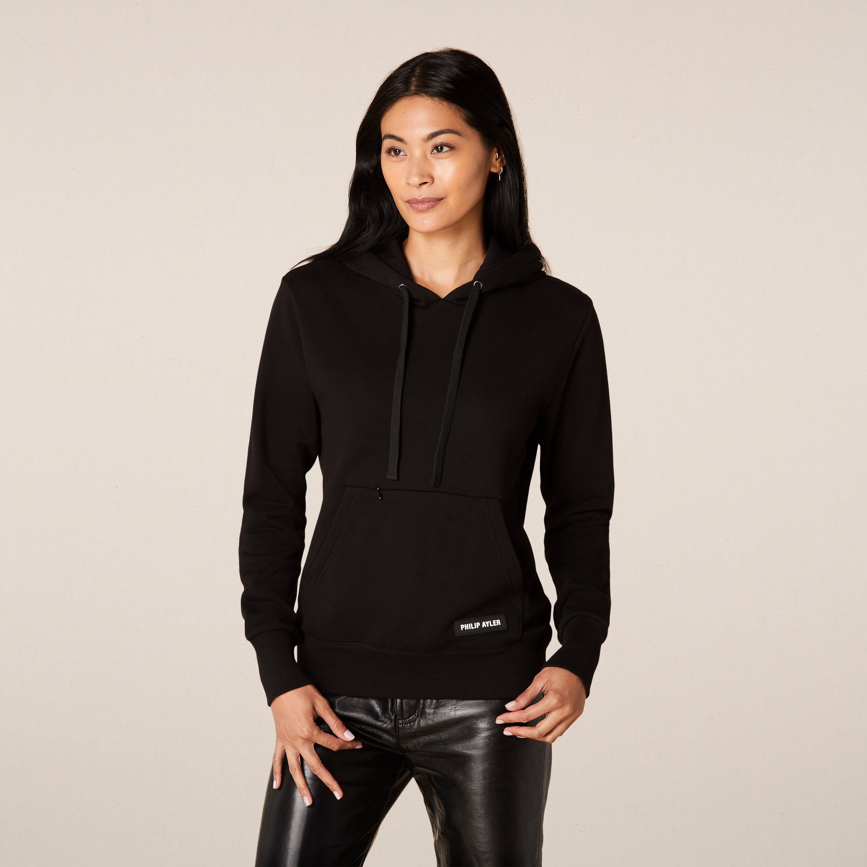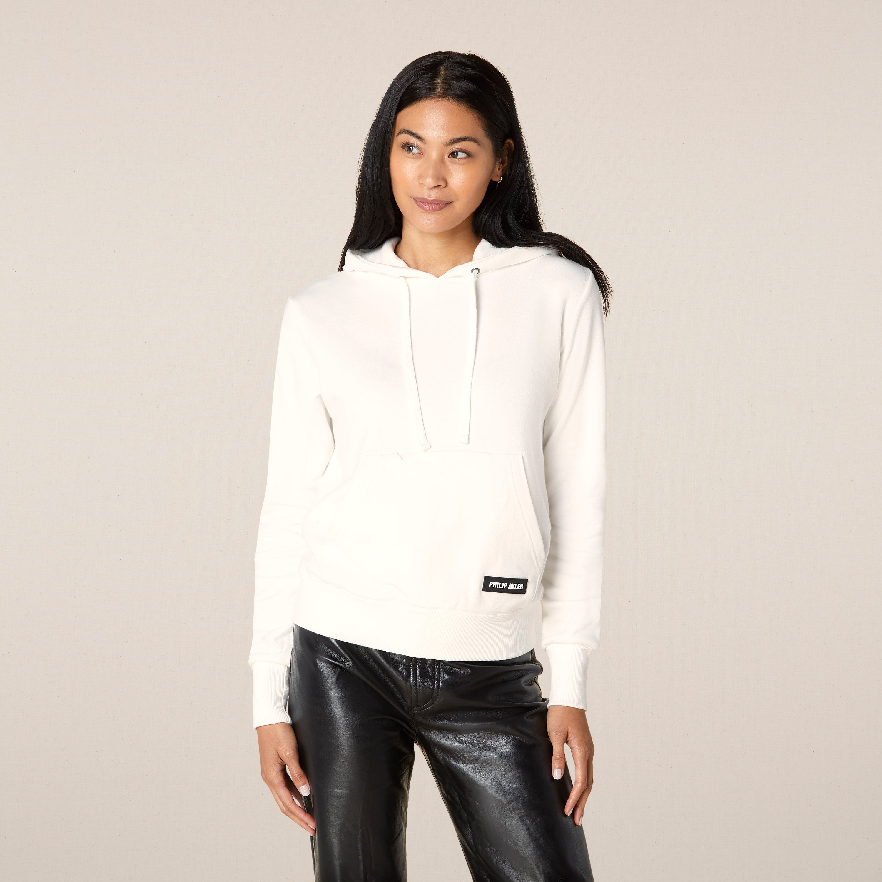 The Philip Ayler Women’s French Terry Pullover Hoodie is where elevated comfort meets thoughtful design. Crafted from 100% organic cotton in a luxuriously heavyweight 350 GSM French terry weave, it offers a soft, structured feel that drapes beautifully while keeping you warm. The double-layered hood with tonal drawstrings adds sculptural shape, while a classic kangaroo pocket is complemented by a hidden zippered interior pocket. Perfect for stashing your i-phone, keys, or cards. Finished with a custom Philip Ayler patch at the hem, this hoodie is available in crisp white and classic black. Effortless, flattering, and quietly bold. Your new everyday essential.