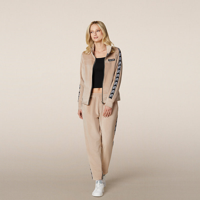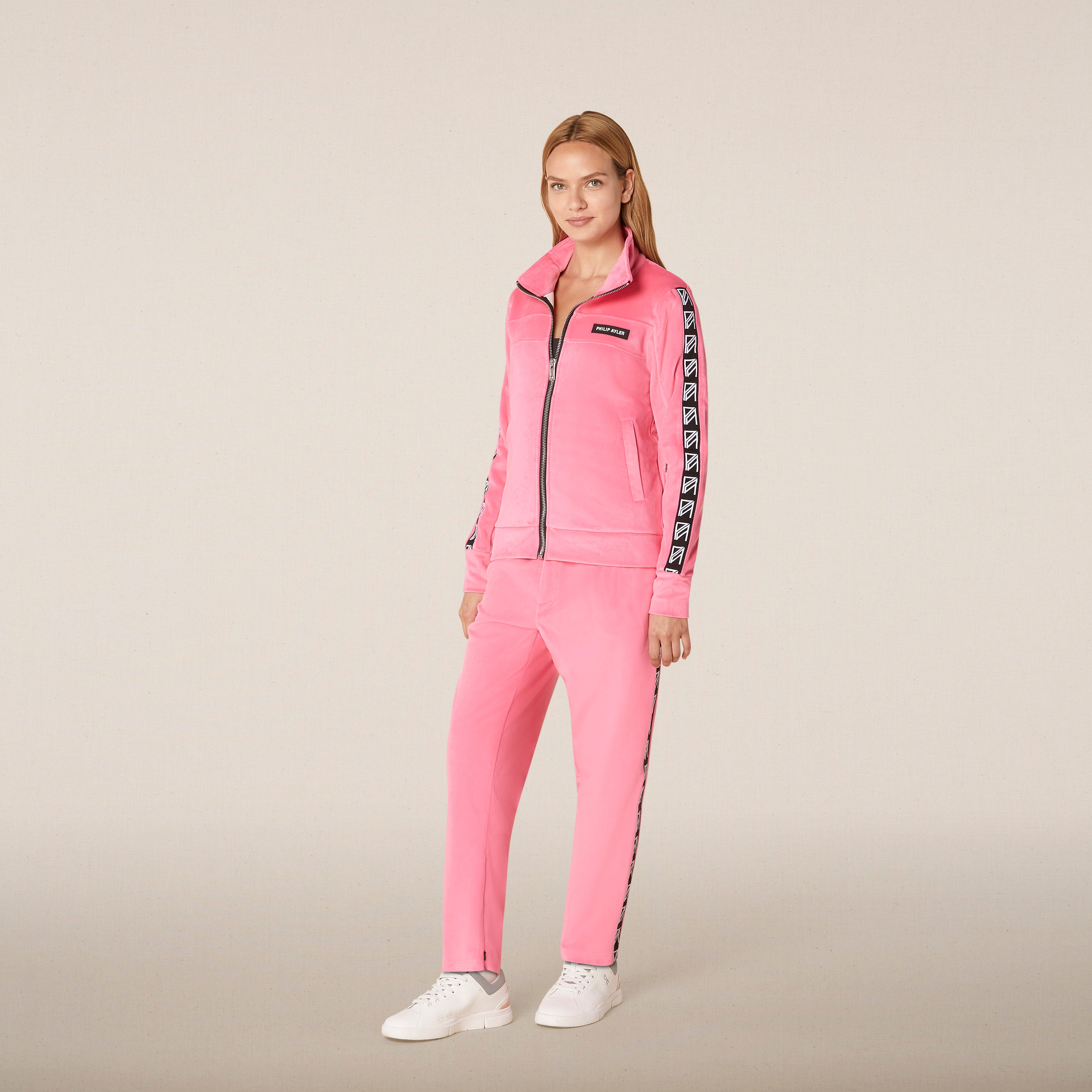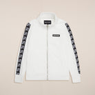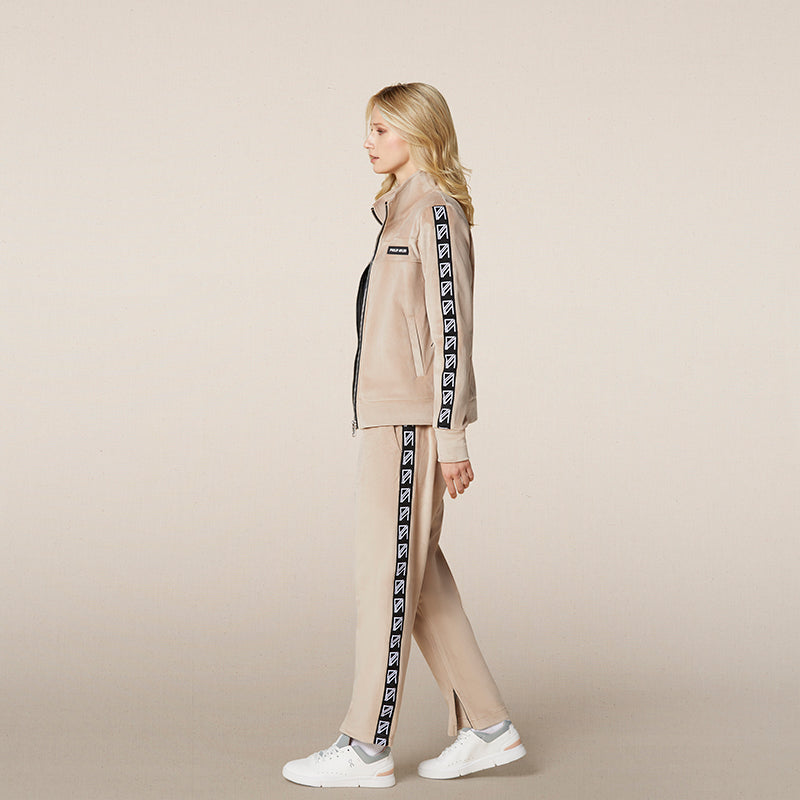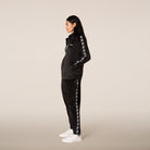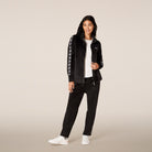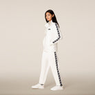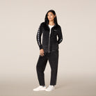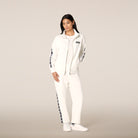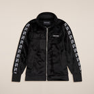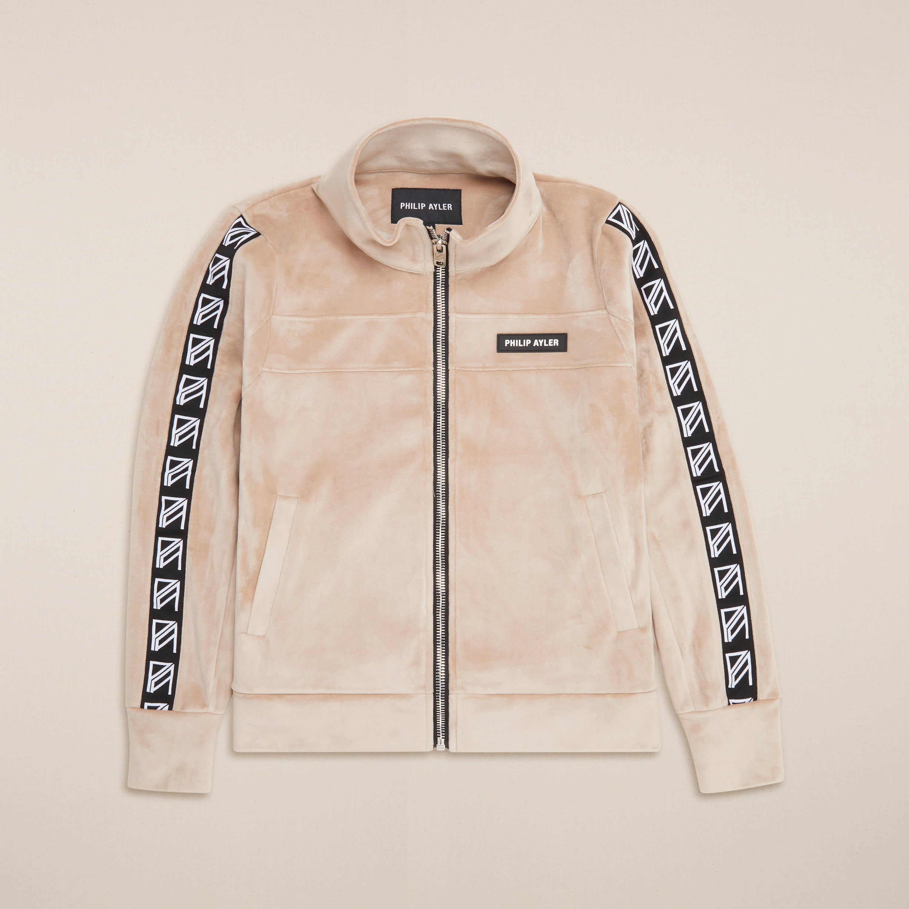 Signature Philip Ayler logo taping runs down the sleeves and pant legs for a graphic, athletic edge. The jacket features a stand collar, full front zip, and secure zippered pockets, while the pants include front zip pockets and custom-branded button closures at the back. The look is finished with a Philip Ayler chest patch that anchors the set in statement style.