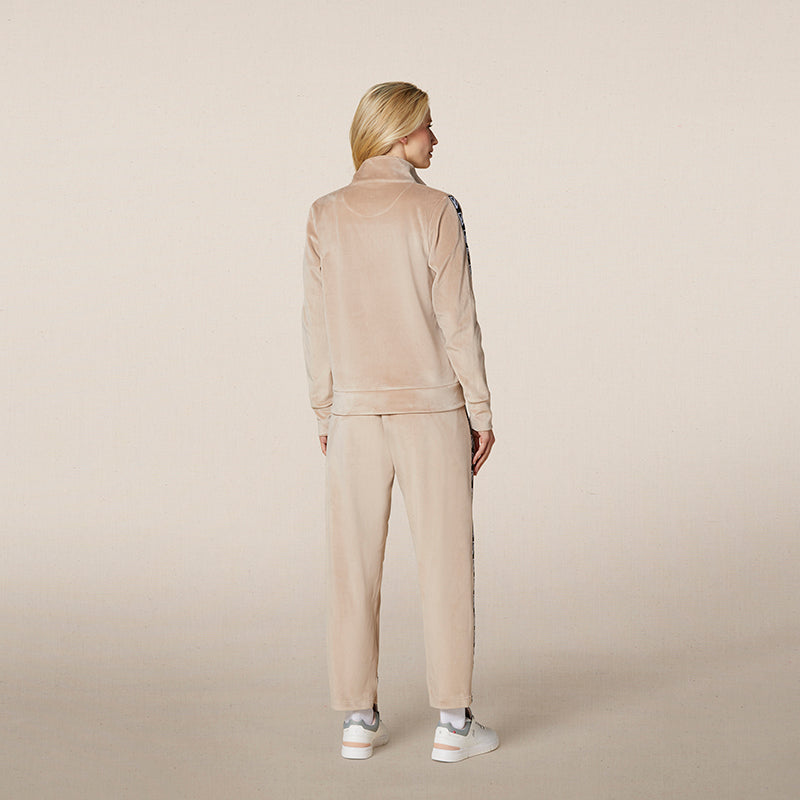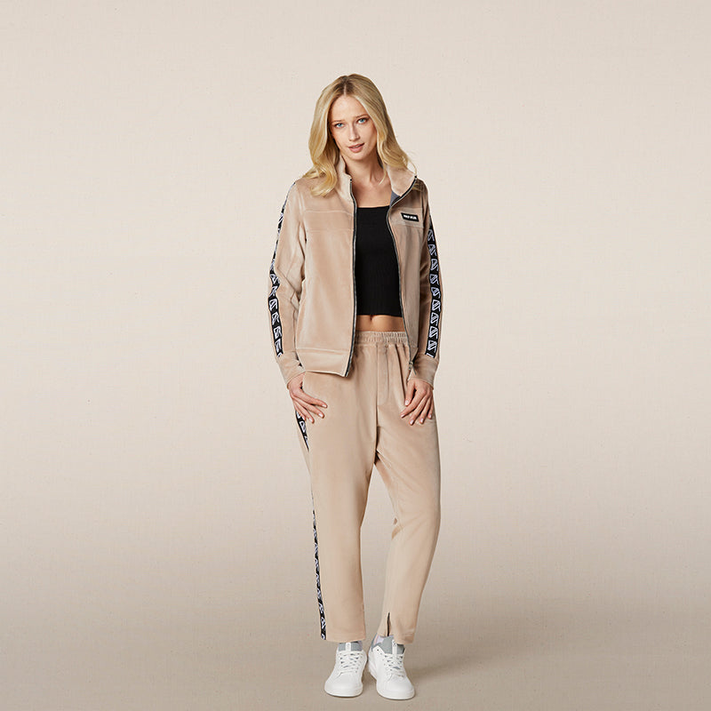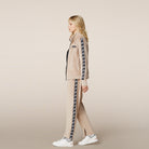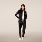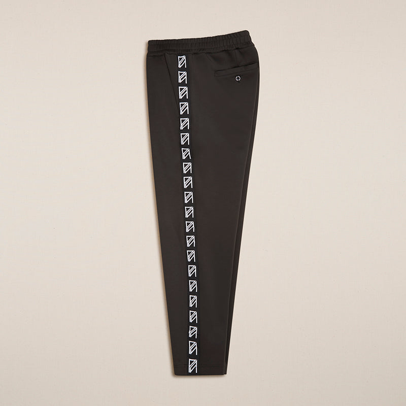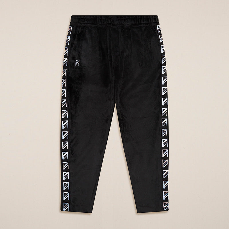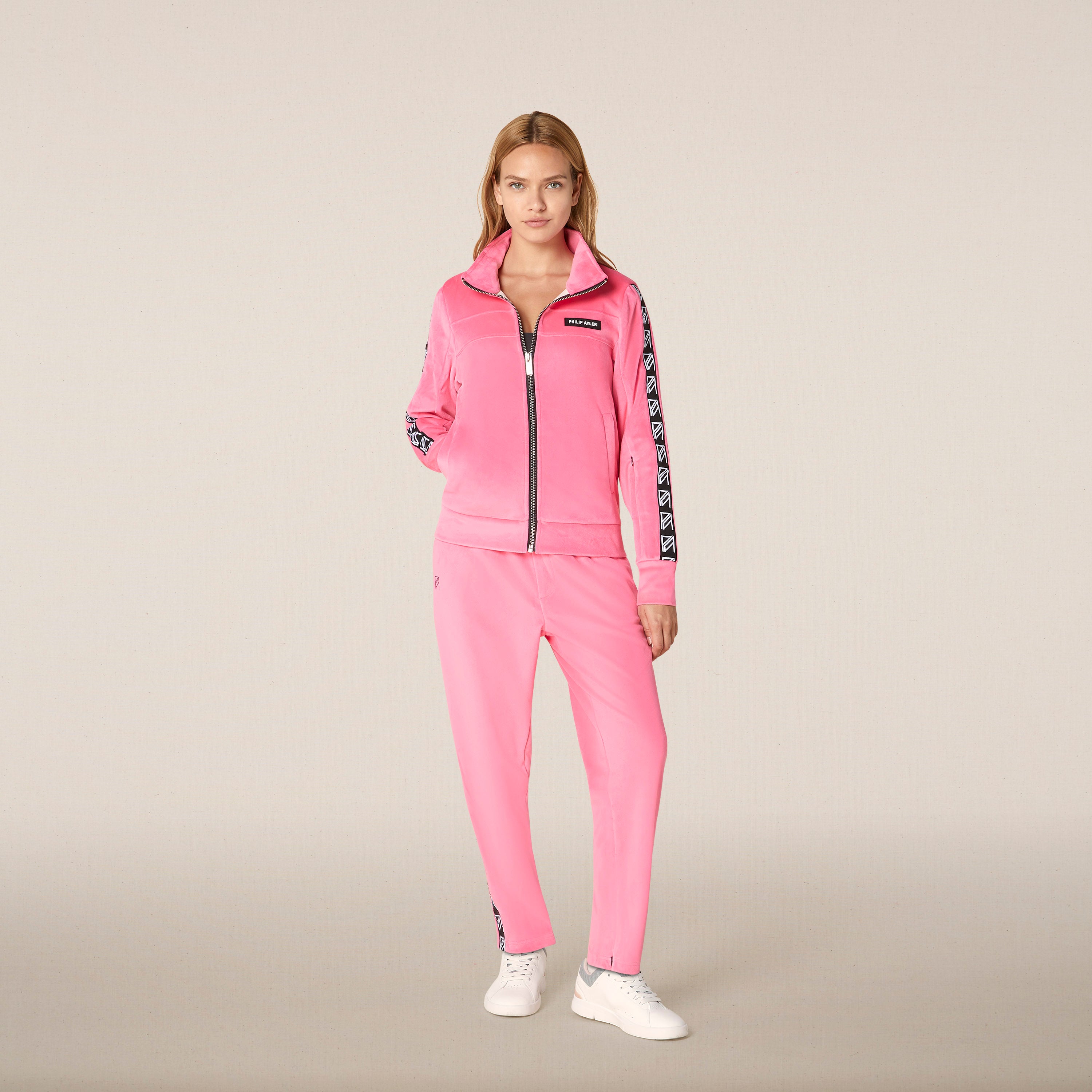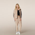 Signature Philip Ayler logo taping runs down the sleeves and pant legs for a graphic, athletic edge. The jacket features a stand collar, full front zip, and secure zippered pockets, while the pants include front zip pockets and custom-branded button closures at the back. The look is finished with a Philip Ayler chest patch that anchors the set in statement style.