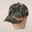 House signature logo graphics illustrated in a crisp white embroideries placed in the front and sides. Finished with a curved brim, embroidered eyelets and double snapback fastening.
