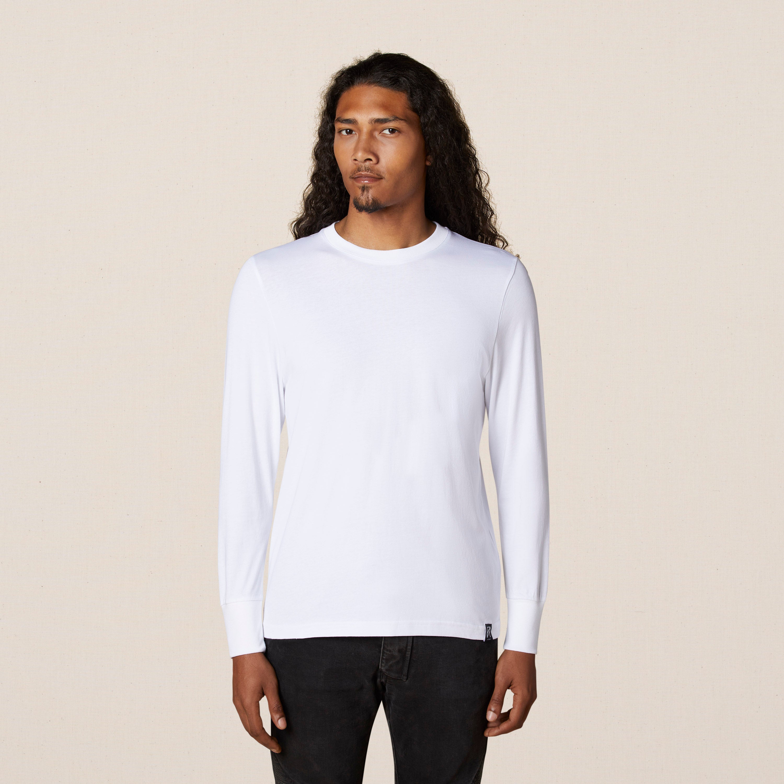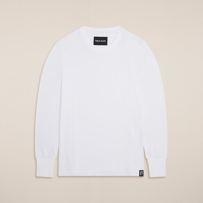 The Philip Ayler Long Sleeve Crew Neck is the definitive upgrade to a timeless classic. Crafted from 160 GSM American-grown, extra long staple cotton, it offers lightweight durability with a buttery-soft hand feel and a natural, breathable finish. Designed with a structured yet relaxed fit, this long sleeve tee transitions seamlessly from day to night, layering effortlessly under jackets or standing strong on its own. Reinforced cuffs, a tailored neckline, and signature woven hem label complete the look. It’s the everyday essential built for comfort, confidence, and quiet distinction.
