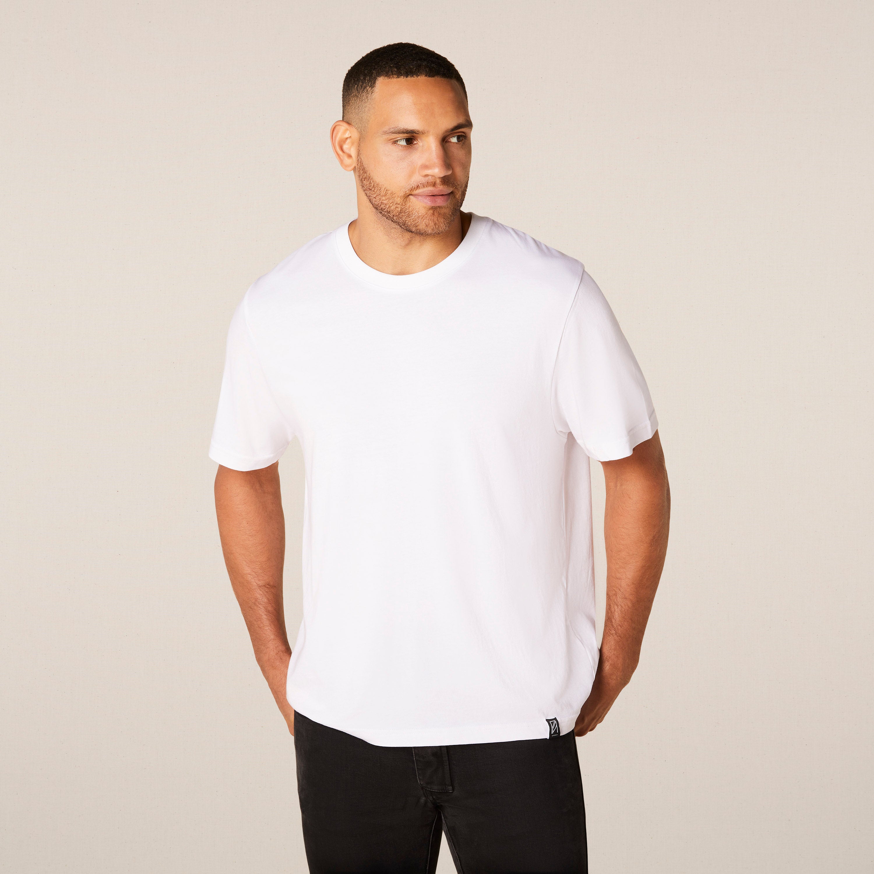 Introducing the Philip Ayler Signature Crew Neck T-Shirt. An elevated essential, crafted from 100% American-grown, extra long staple cotton for unmatched softness, strength, and breathability. This luxurious fiber, known for its silky hand and durability, offers a refined drape and smooth finish that resists pilling and shrinkage. Designed with a modern, tailored fit, and finished with a minimalist woven label at the hem, this tee exemplifies everyday sophistication. Each shirt is made in small batches to ensure superior quality. Timeless, versatile, and supremely comfortable. This is the only white T-shirt you’ll ever want to wear.