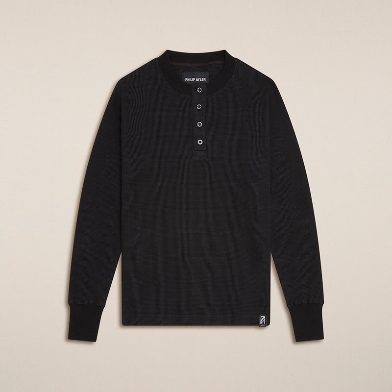 Philip Ayler Men’s Cotton Waffle Henley (Black)