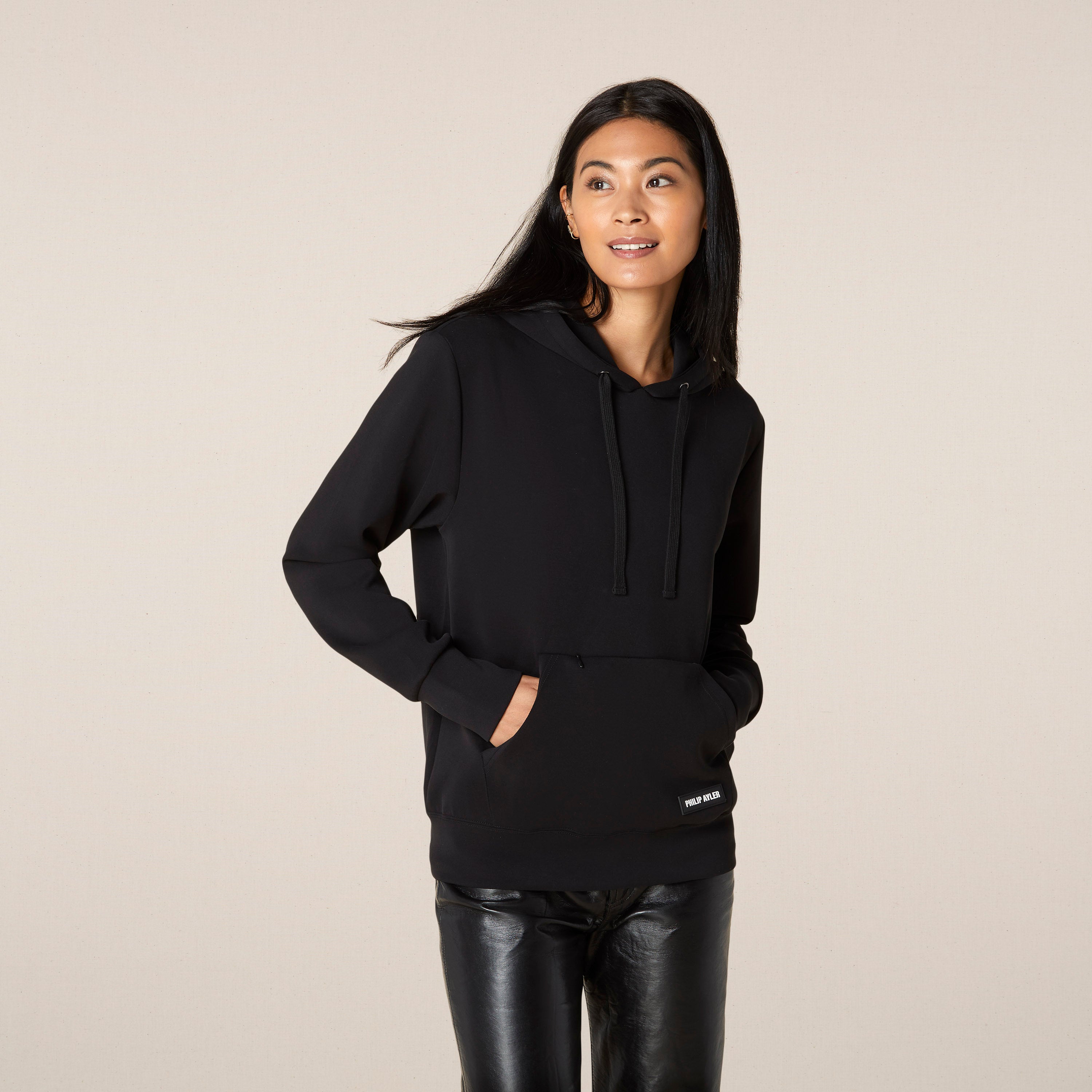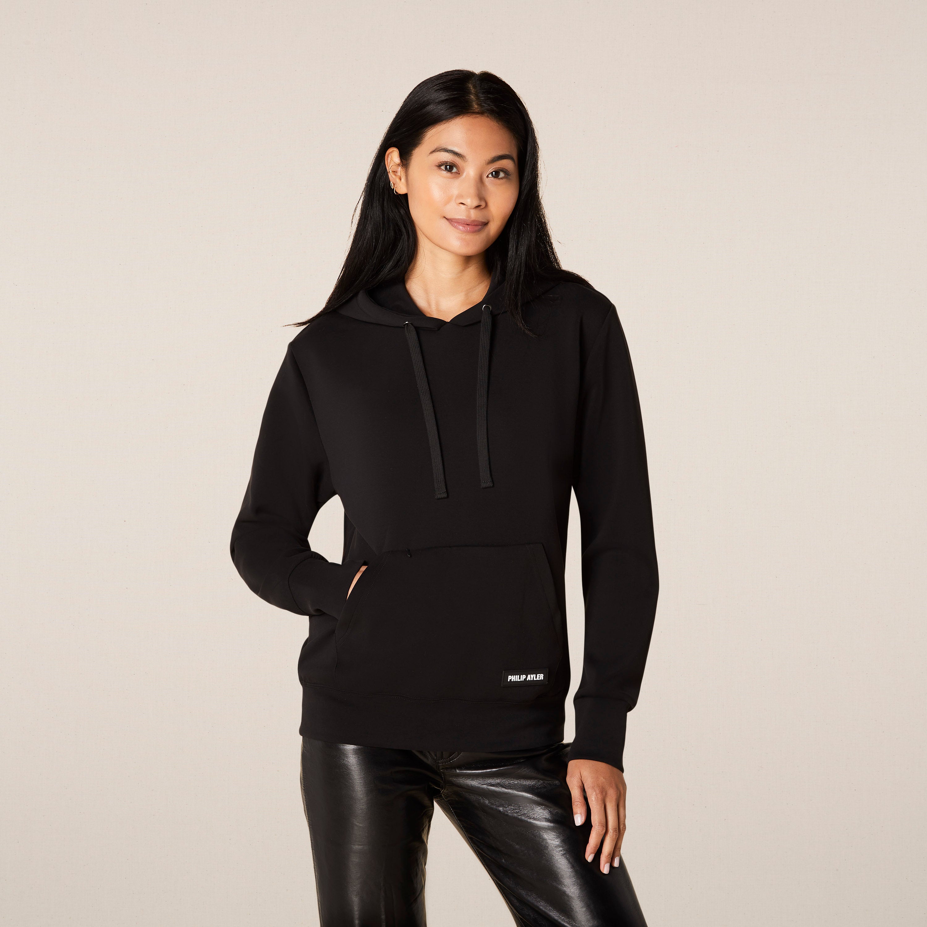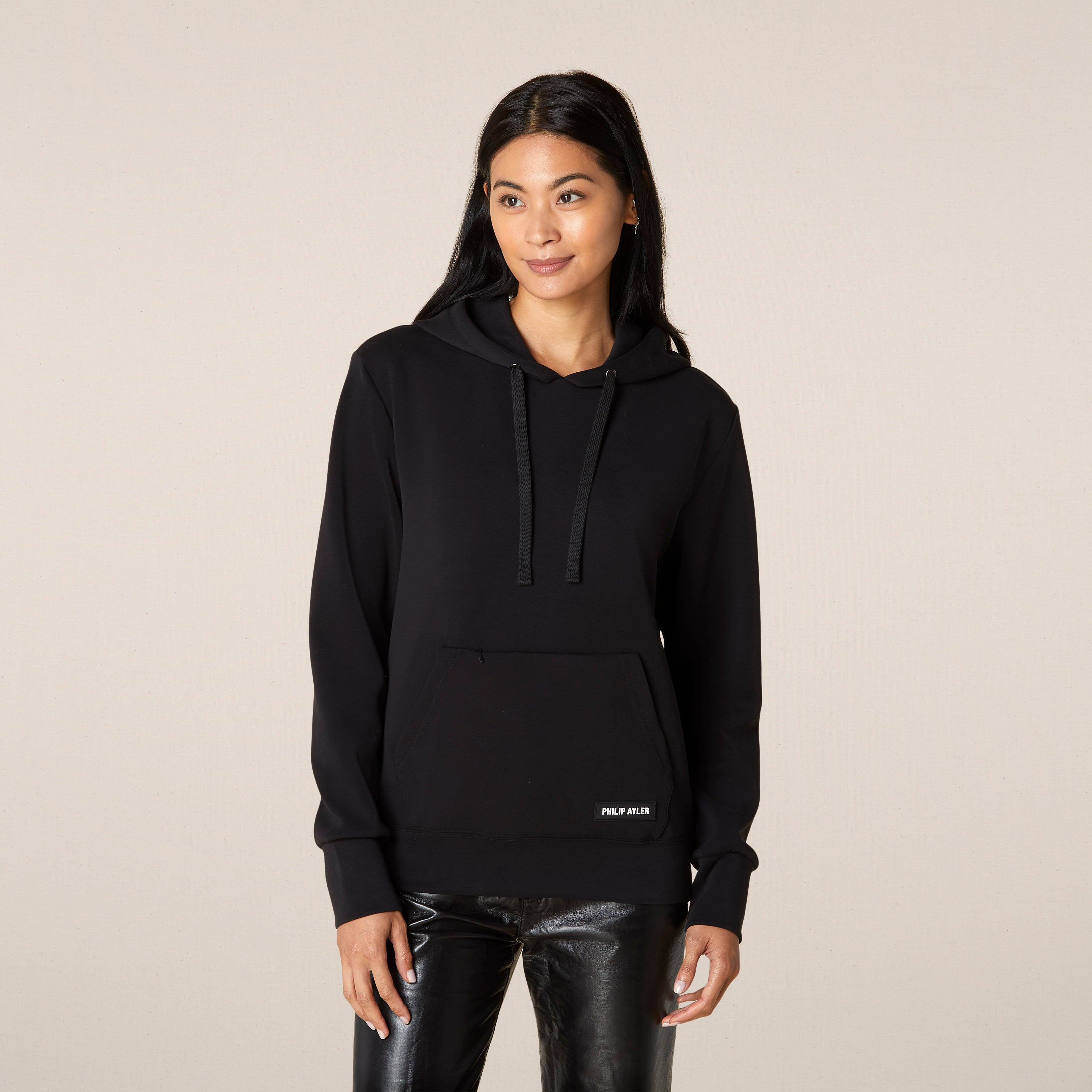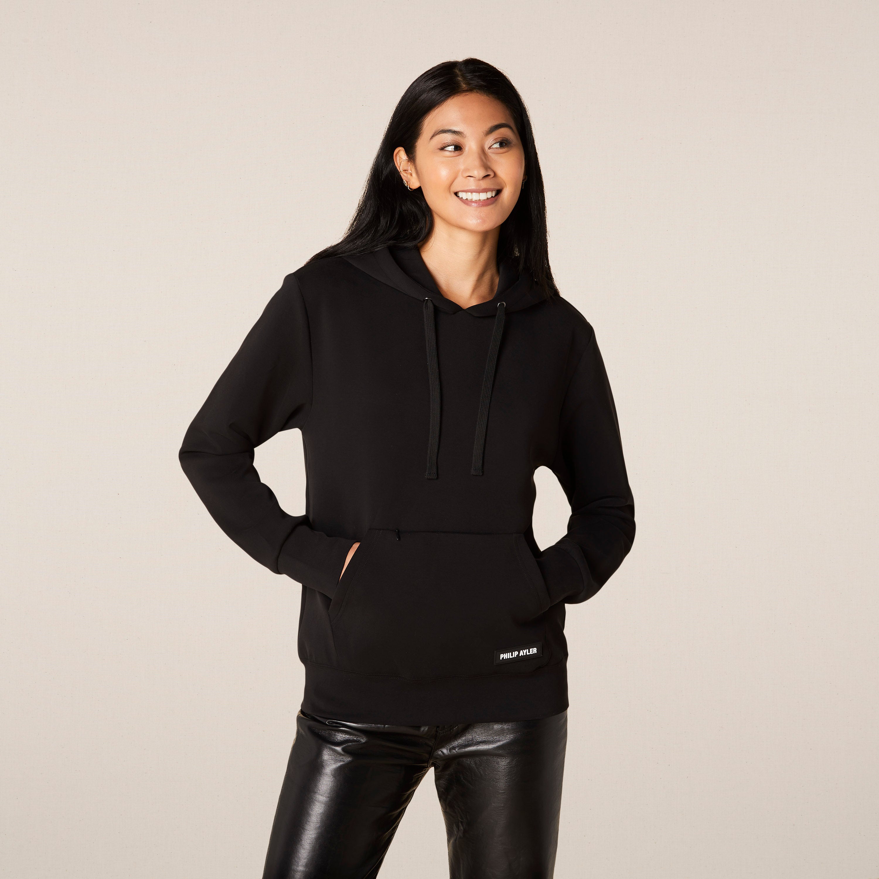 The Philip Ayler Women’s Modal Pullover Hoodie redefines cozy with a luxurious, feminine edge. Crafted from our signature modal fabric, it’s impossibly soft to the touch with a fluid drape that flatters every silhouette. Lightweight yet warming, it’s designed for elevated comfort, whether you’re on the go or winding down. A classic kangaroo pocket is paired with a discreet hidden zip pocket for your essentials, while tonal drawstrings, a sculpted hood, and the signature Philip Ayler patch complete the look. Available in White, Grey, and Black. This is the hoodie that feels as good as it looks.